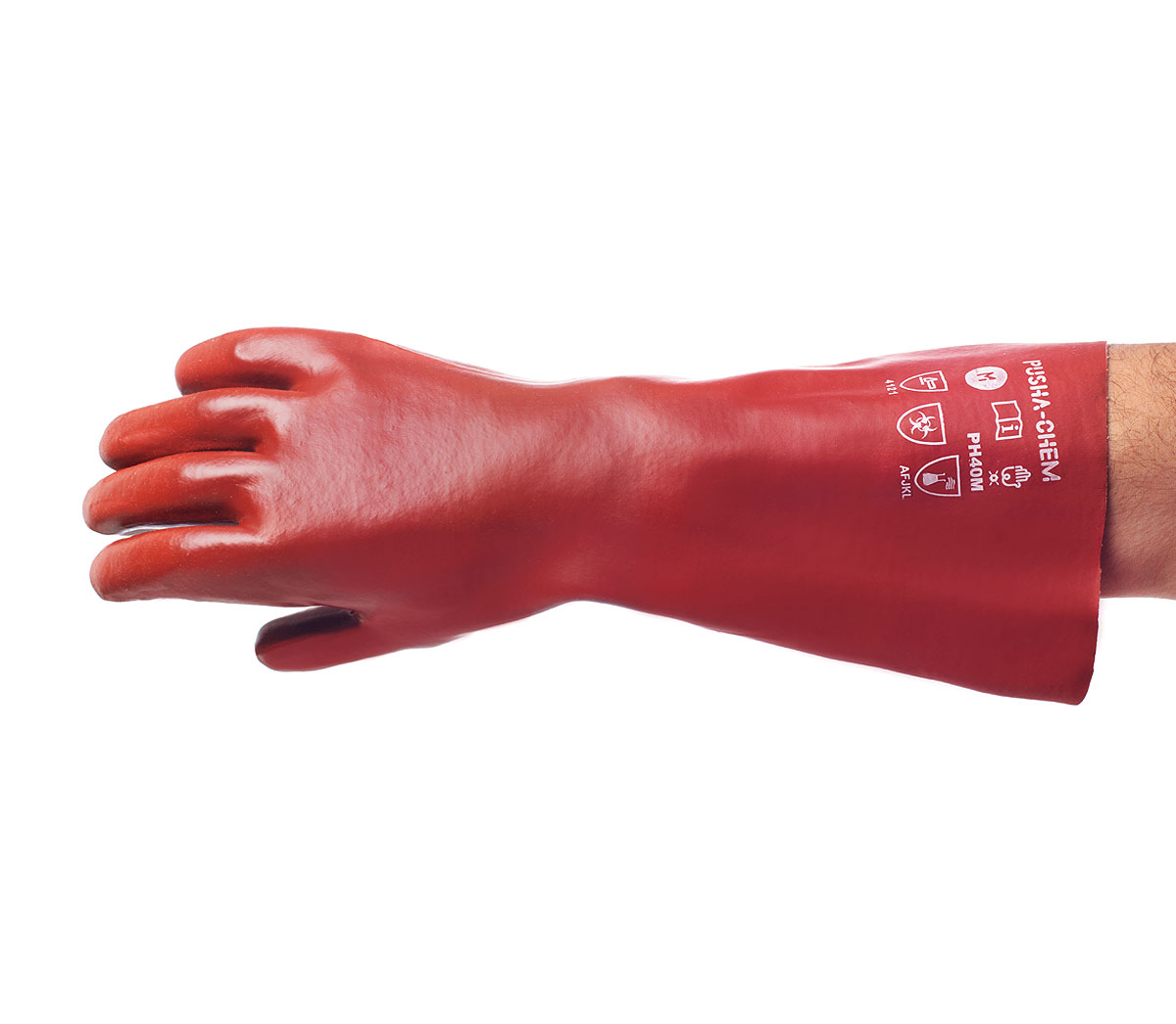 دستکش مقاوم شیمیایی پوشا (PUSHA-CHEM) یک انتخاب ایمن و حرفه‌ای برای کاربرانی است که با مواد شیمیایی خطرناک، اسیدها، قلیاها سروکار دارند. این دستکش با طراحی بلند تا بالای ساعد و پوشش PVC مقاوم، از دست ها در برابر تماس مستقیم با مواد خورنده و مایعات صنعتی به‌طور کامل محافظت می‌کند.
